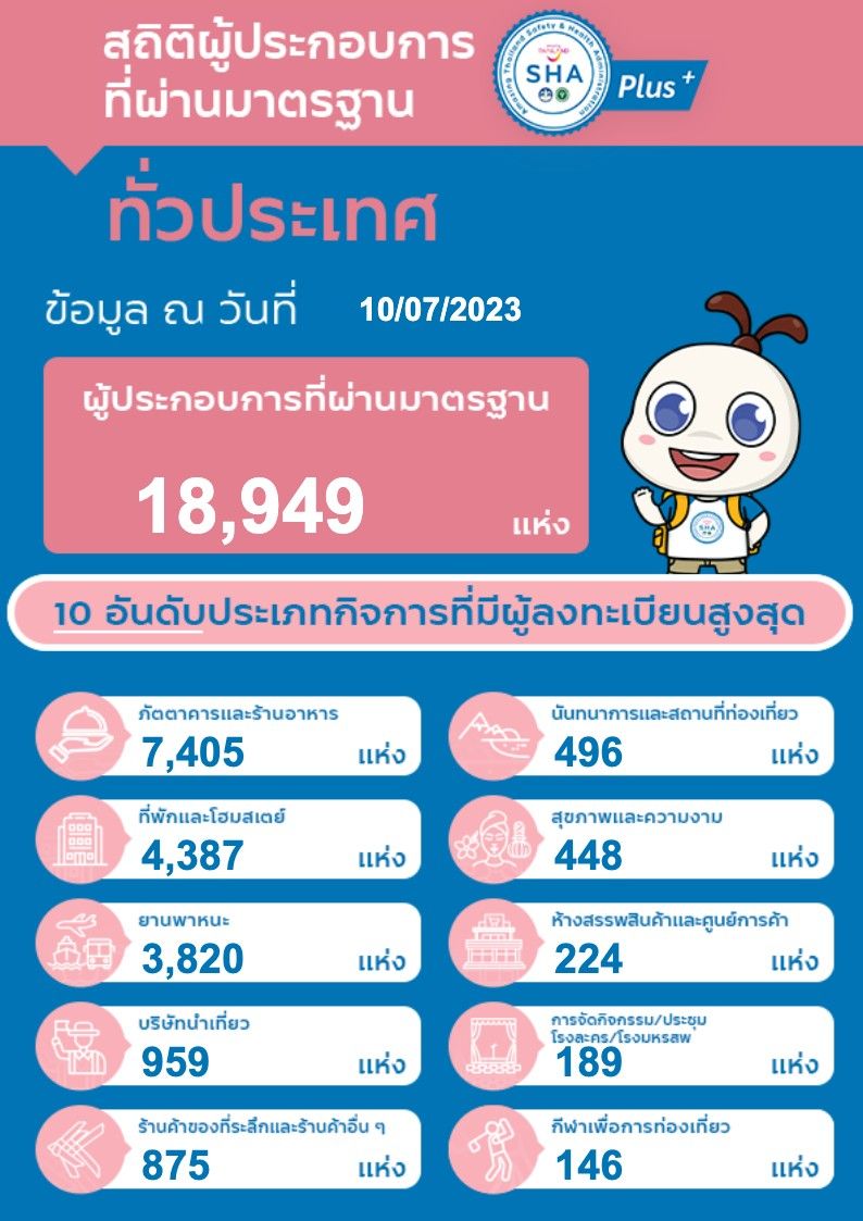 The Tourism Authority of Thailand (TAT) has strengthened the confidence of both Thai and foreign tourists with the SHA safety standard logo to elevate Thai tourism to be safe and sustainable. Cooperation from entrepreneurs in the tourism industry, both in the public and private sectors, across the country has been received.